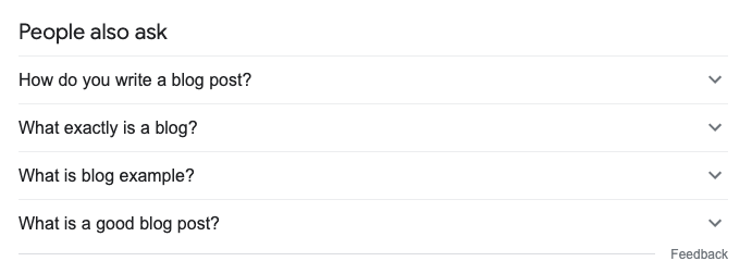 For example, when I search for “blog post,” these two sections throw up 10-12 ready topic ideas. You can get more by simply looking at the articles that are ranking.